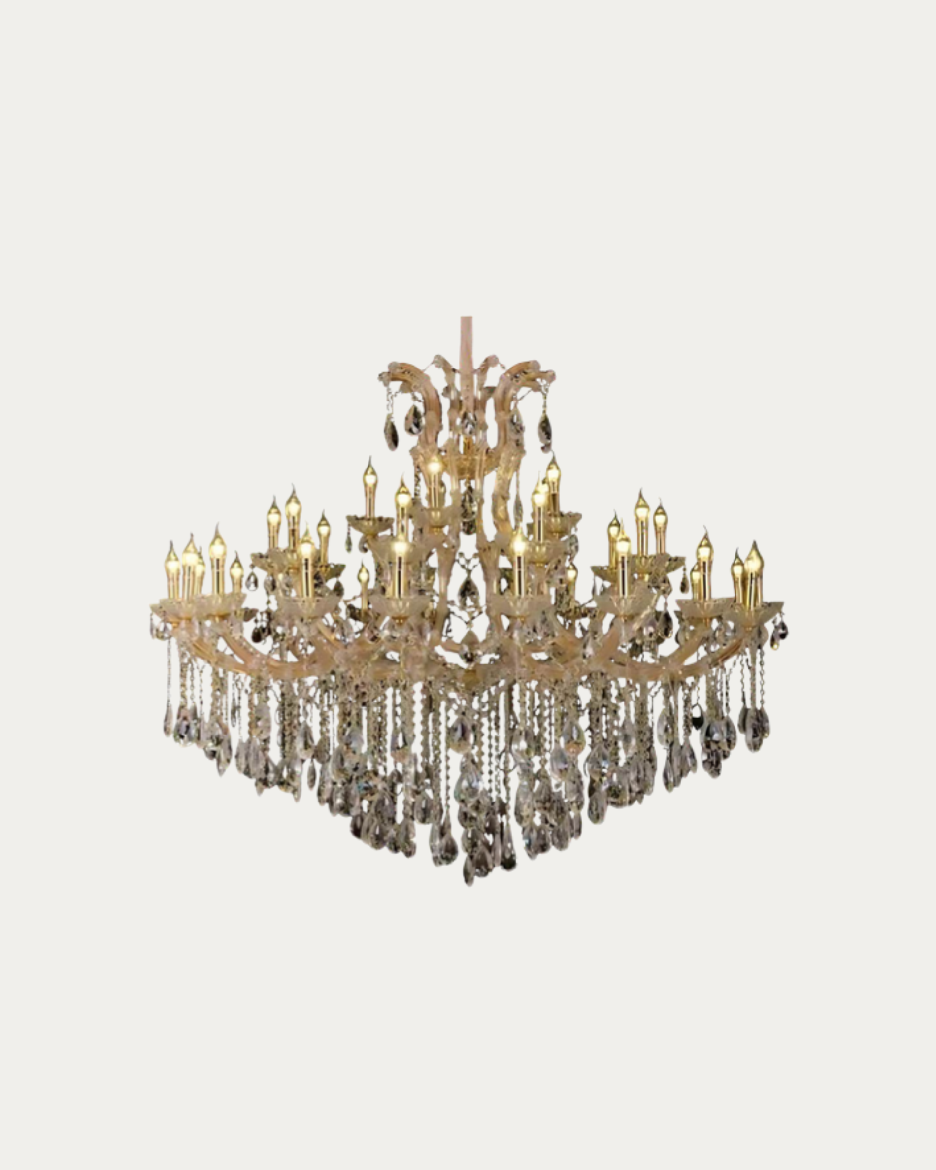 Este chandelier ofrece un brillo excepcional gracias a su cristal claro facetado, que distribuye la luz de manera elegante y uniforme. Es una pieza decorativa imponente, ideal para proyectos de alto diseño donde se busca lujo, amplitud y protagonismo visual.