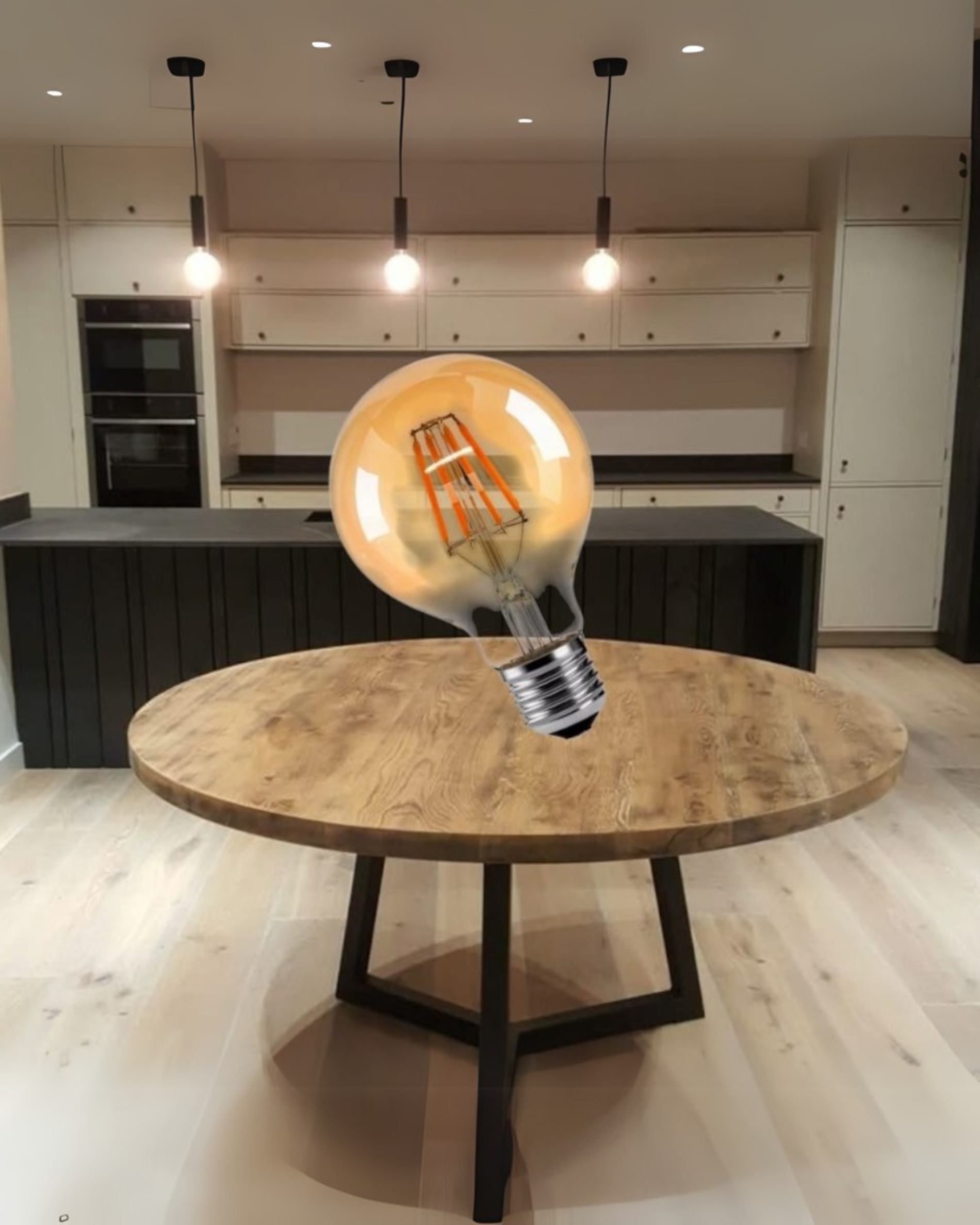 | Material: Cristal transparente con filamentos LED visibles |