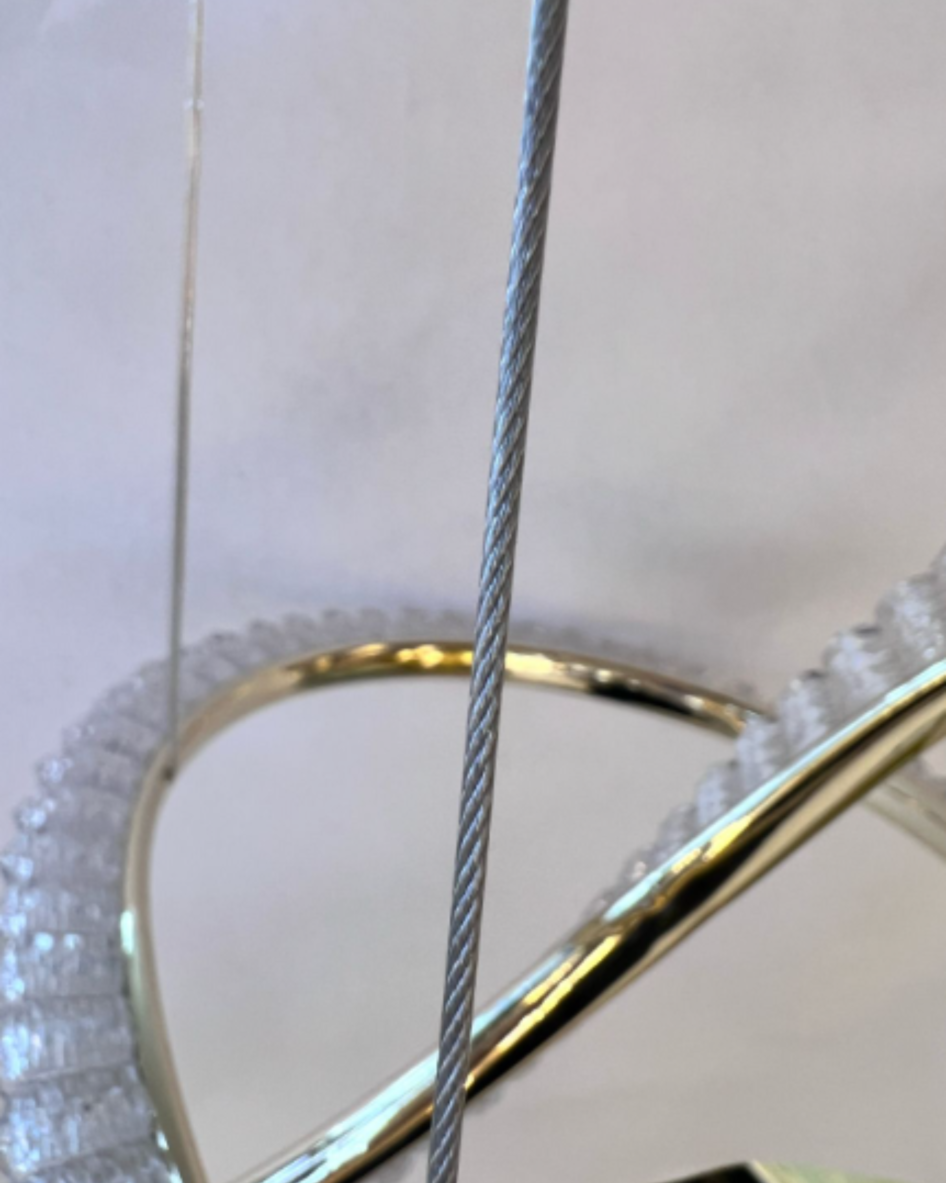 | Instalación: Suspendido mediante cables delgados ajustables, permitiendo personalizar la altura. |