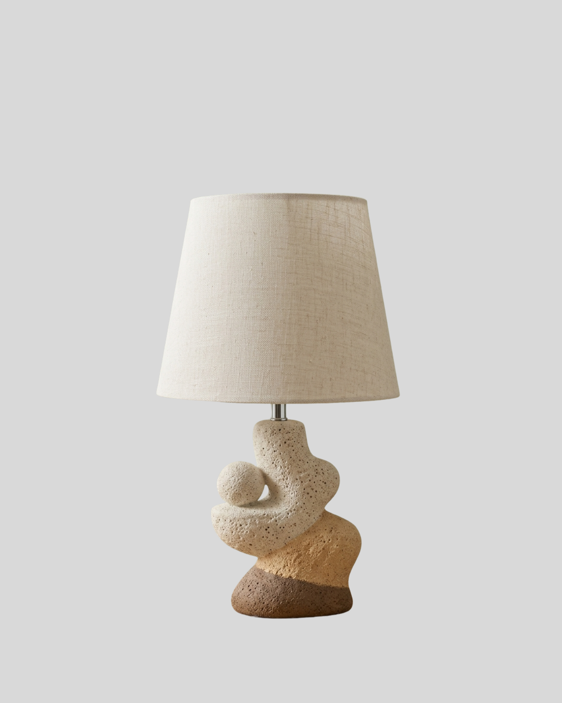 Dale un toque elegante y acogedor a tus espacios con esta hermosa lámpara de mesa con base en cerámica en tonos blanco y café. Su diseño moderno y decorativo la convierte en el complemento perfecto para iluminar y decorar tu hogar u oficina.