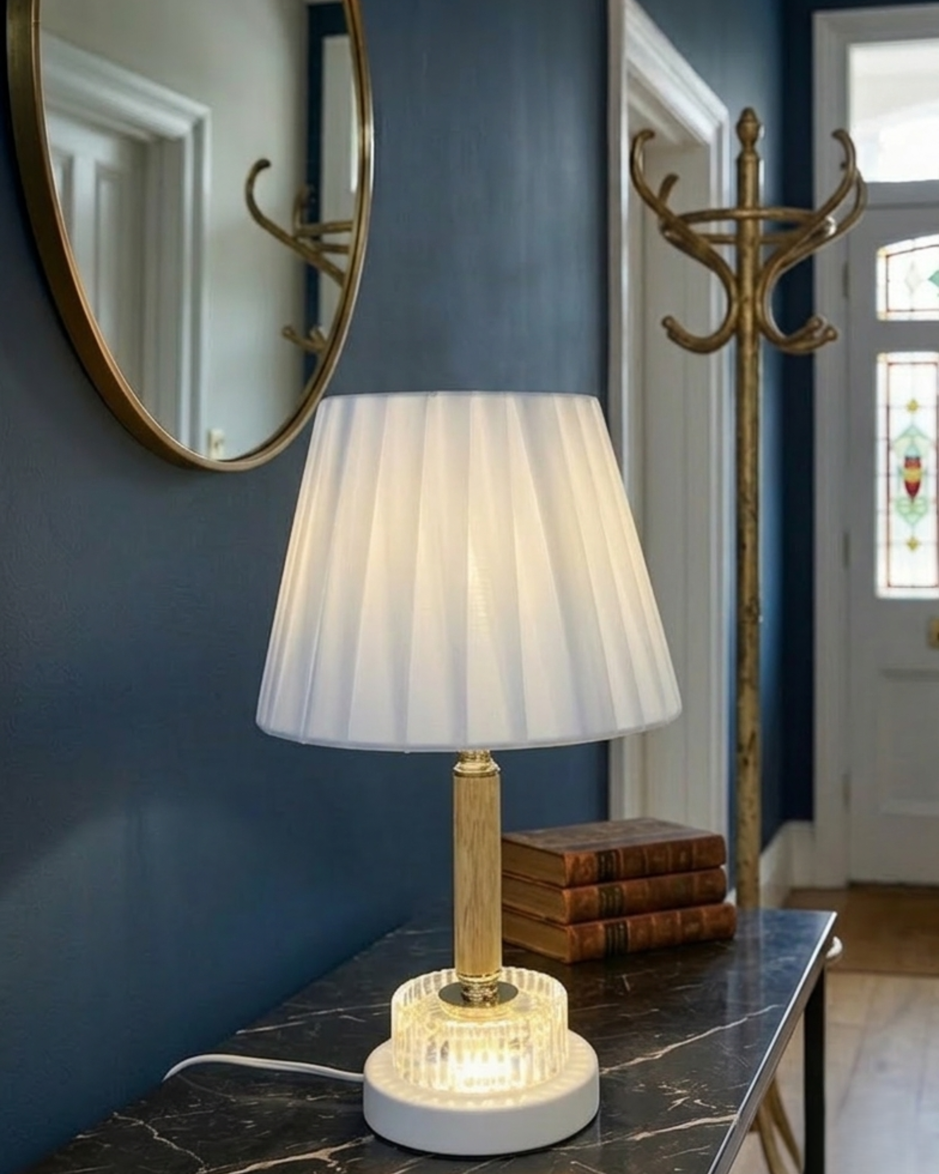La lámpara de mesa con estructura metálica y acrílico es una solución de iluminación decorativa ideal para quienes buscan combinar diseño moderno, funcionalidad y eficiencia en espacios interiores.