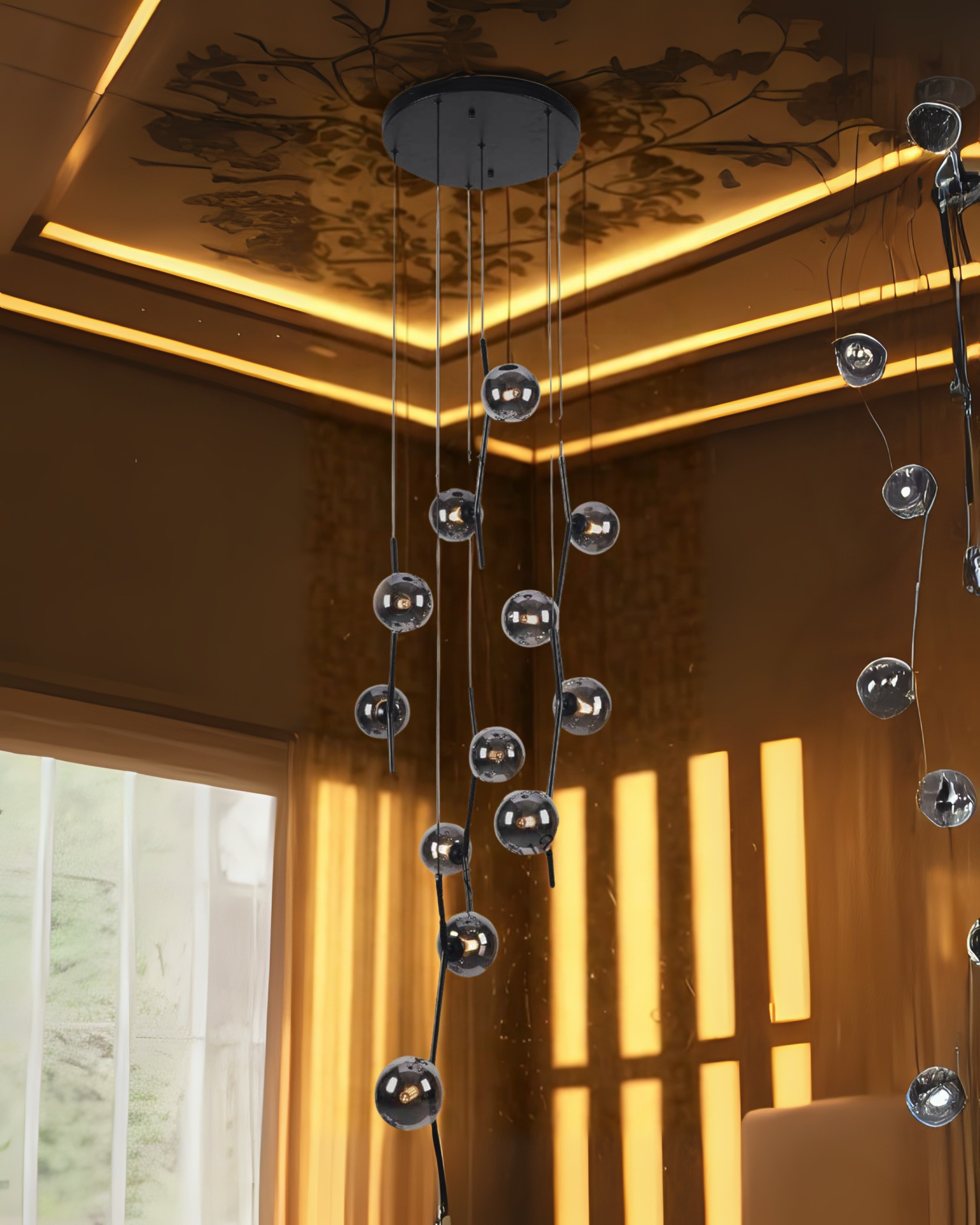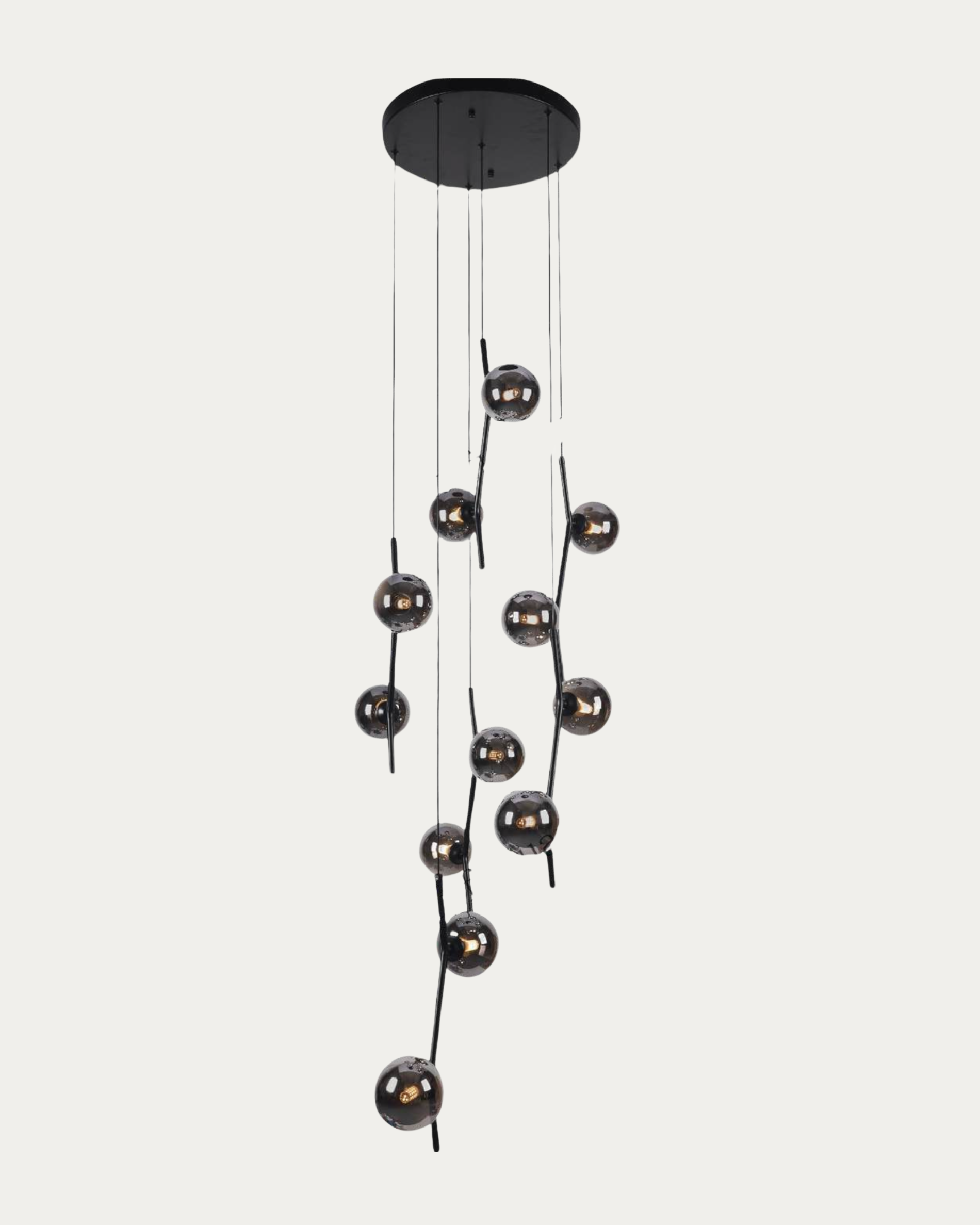 Dale un toque moderno y elegante a tus espacios con esta luminaria colgante de vidrio y herraje en color negro con gris humo. Con 18W de potencia y 12 bombillos tipo G9, ofrece luz en triple tonalidad (cálida, neutra y blanca) ideal para salas, comedores y habitaciones. Diseño compacto de 40cm x 10cm que combina estilo y funcionalidad.