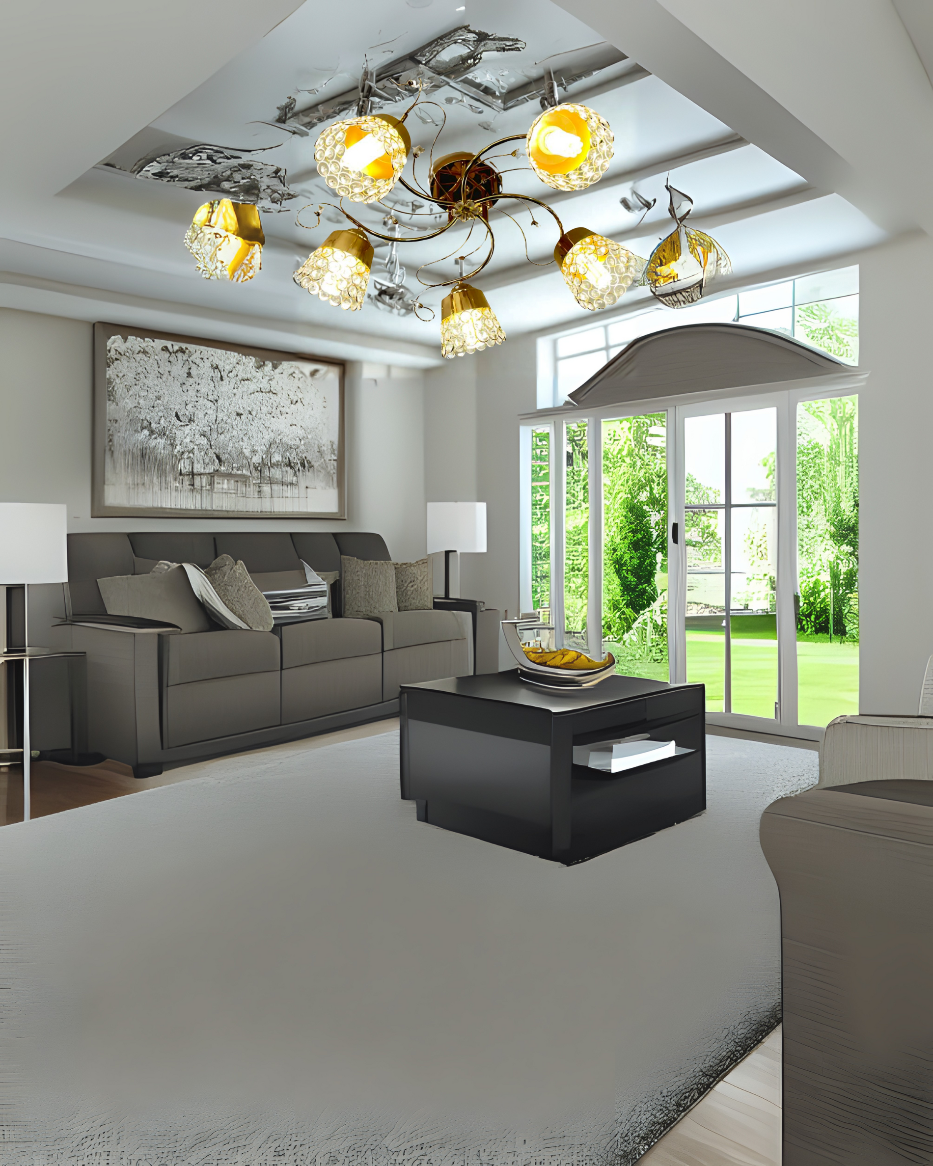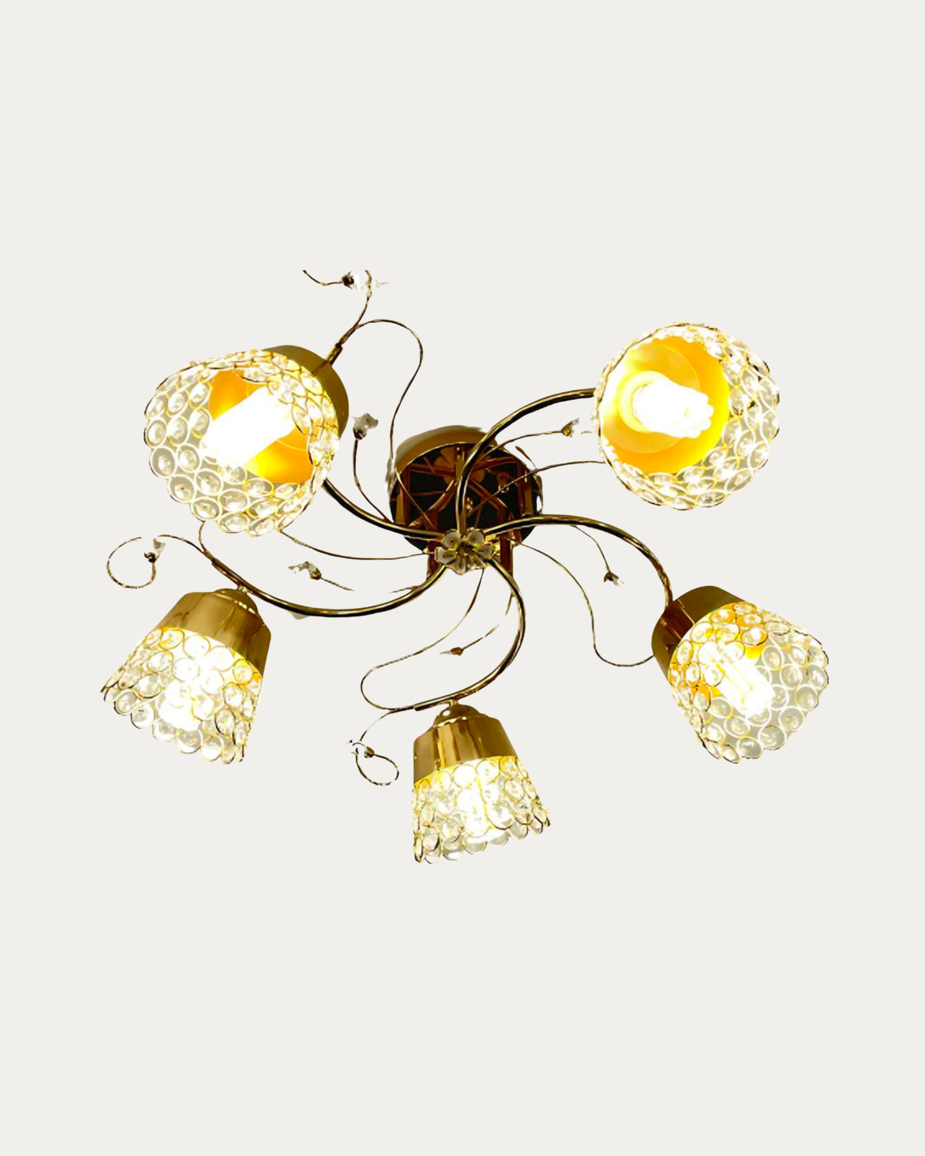 Ilumina tus espacios con esta sofisticada lámpara de techo fabricada en cristal y herraje de alta calidad con acabado en oro francés ✨. Su diseño clásico y brillante la hace ideal para salas, comedores, habitaciones o espacios comerciales con estilo. Compatible con bombillo E27 (no incluido).