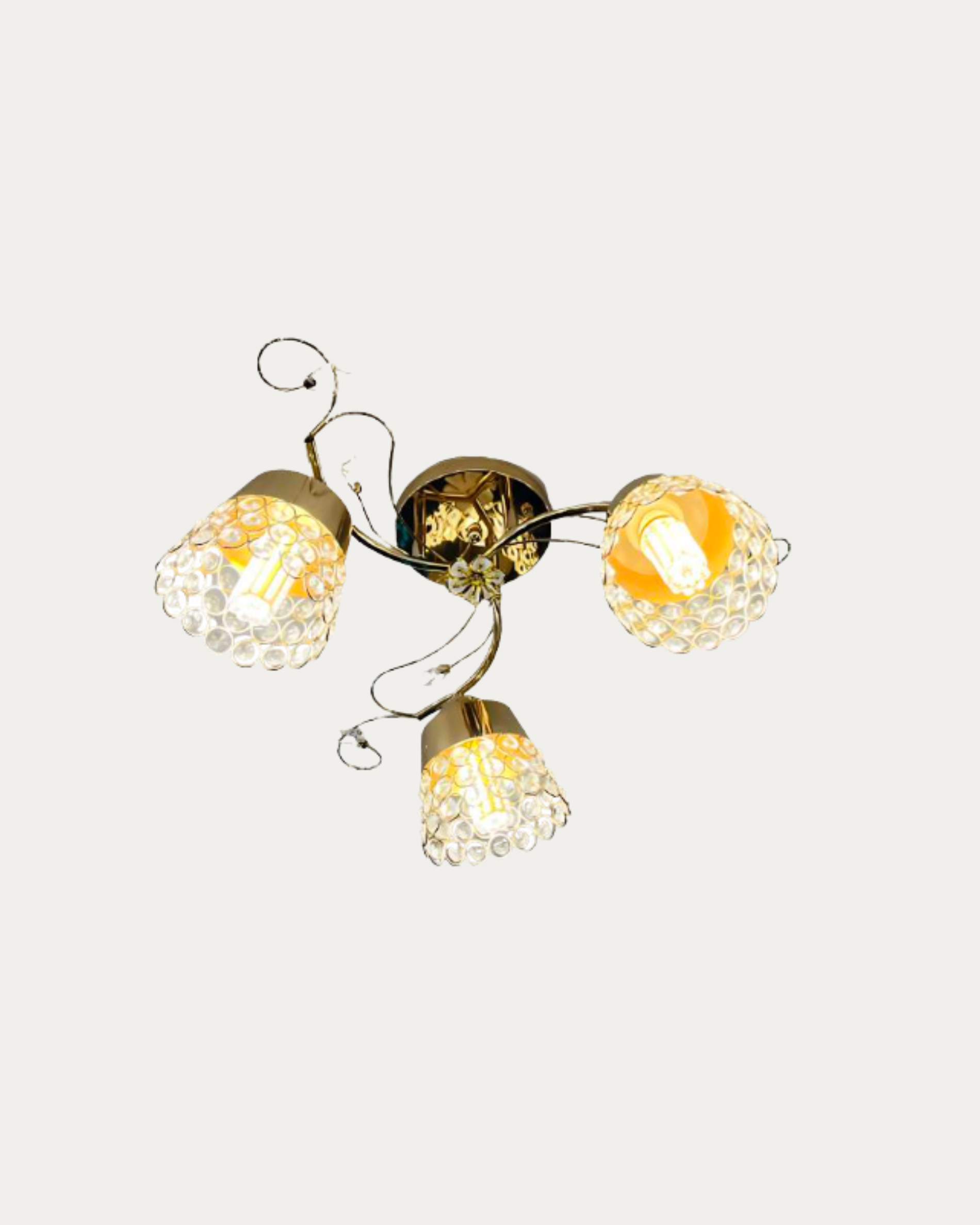 Ilumina tus espacios con estilo gracias a esta luminaria de techo fabricada en cristal y herraje color oro francés, ideal para salas, comedores o habitaciones. Su diseño sofisticado combina materiales de alta calidad con una estética moderna y elegante.