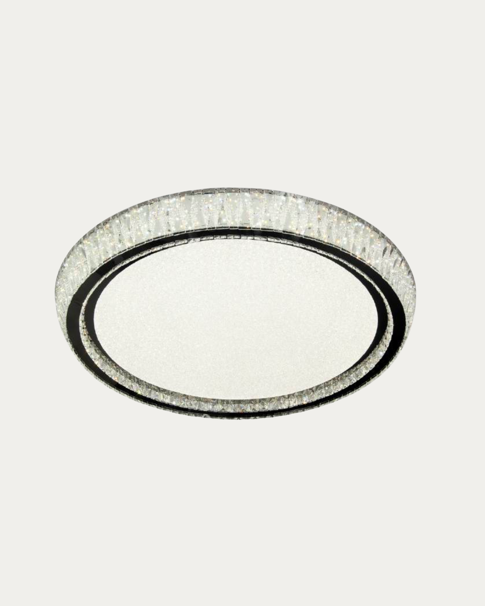 Transforma cualquier ambiente con este elegante plafón de techo en cristal K9 y acabado en color cromo. Su potencia de 148W y luz tricolor regulable ofrecen una iluminación moderna y funcional para salas, habitaciones, oficinas o espacios comerciales.
